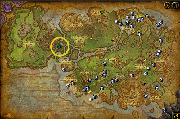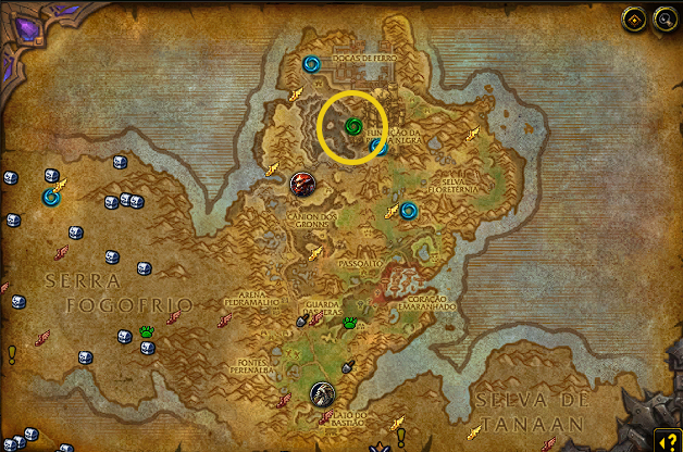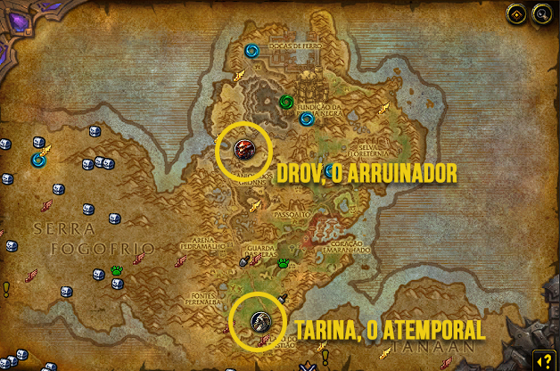 Rukhmar (Agulhas de Arak) – O raro fica voando na costa do mapa, área marcada no mapa