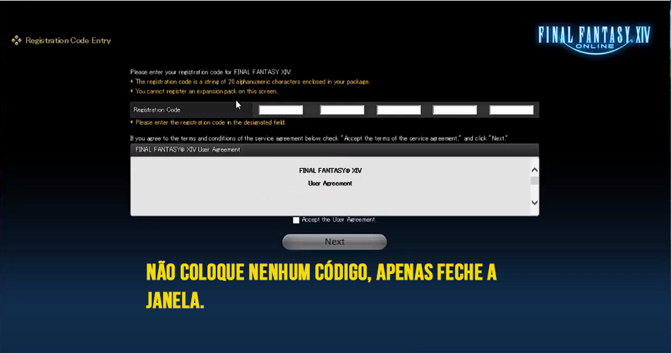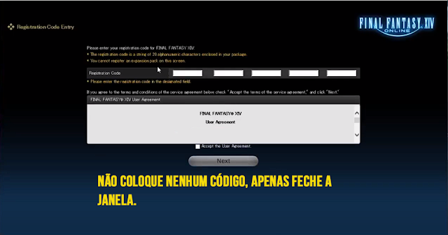 Preencha com os dados da conta e senha, na tela do contrato clique em “Aceito” e na próxima página onde informa que você se registrou, clique em “Next”.