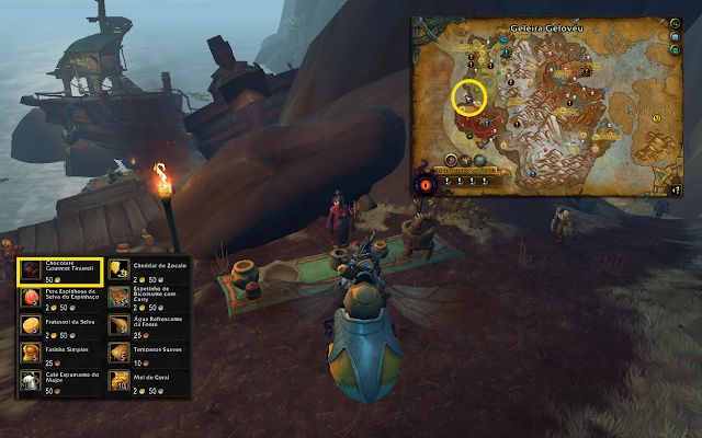 Antes de tudo é preciso ir ao NPC Golkada em Zuldazar (/way 71.2, 29.6) se você for Horda, e se você for Ally no NPC Xun Xun Doceflor em Drustvar (/way 20.6, 45.6) e compre 10 Chocolate Gourmet Tirasreli.