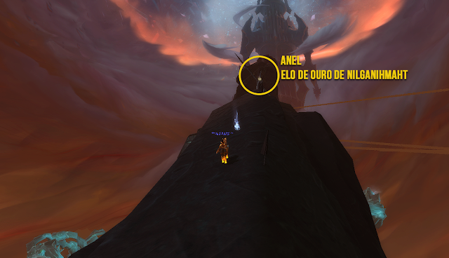 A Mão de Nilgahihmaht possui marcações e engrenagens onde você deve clicar para colocar cada anel. Ao colocar os 5 anéis você irá receber a missão “Vamos por partes” que te dá como recompensa a montaria.