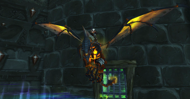 Volte todo o caminho até chegar a entrada da masmorra, vá em direção a rampa que você subiu, e embaixo dela terá uma porta aberta. Siga o caminho até chegar a Imagem de Medivh. Interaja com ele e aguarde a conversa entre o mago e um dragão. Agora é só matar o dragão e receber a montaria.