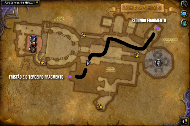 Agora do local que você matou o Tristão e olhando de frente para o salão vá até a única entrada a direita. Entrando na Área de Serviço, siga para a esquerda até chegar ao ponto onde terá que pular para a área de baixo (Área dos Serviçais). Já na parte de baixo vá para a entrada á direita (onde terá teias de aranha na frente), siga sempre em frente e quando chegar na última entrada vire para a direita onde terá o Quarto Fragmento e um portal. Após clicar no fragmento, entre no portal que irá te levar para a entrada da masmorra.