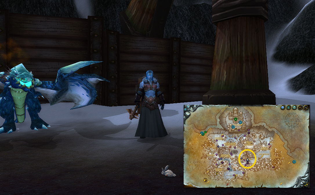 Para conseguir essa montaria você precisa liberar as quests diárias com a Gretta, a Árbitra (50.8, 65.6 – Picos Tempestuosos), e para isso você precisa fazer uma sequencia de quests para conseguir reputação com a facção Os Filhos de Hodir.